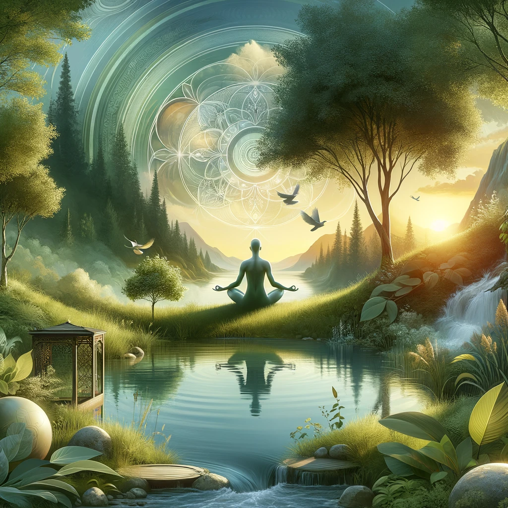 Beden ve zihin dengesi, otokontrol, dinginlik, temiz beden ve zihin kavramlarını işleyen bir resim. Bu sahne, fiziksel ve zihinsel iyi oluşun uyumunu yansıtıyor.
