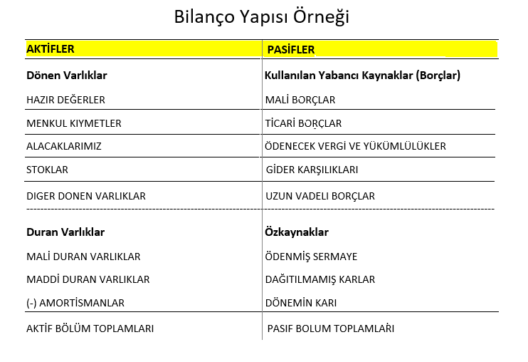 Bilançoyu oluşturan Aktif ve Pasif değerlerin içeriği nelerden oluşur?